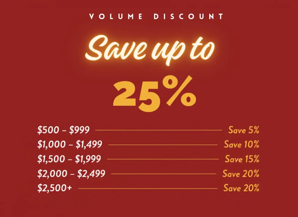 Need to buy many gifts? Give Firebirds gift cards to thank your customers or employees — and save up to 25%!
